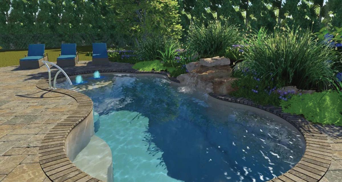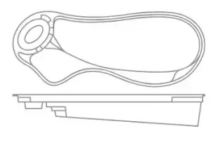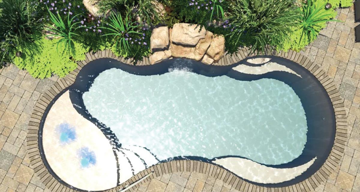A freeform pool that offers an extraordinary wraparound entry area and bench at the front of the pool. Available in three lengths that allow you to coordinate creative landscape design with a range of swimming widths and depths.