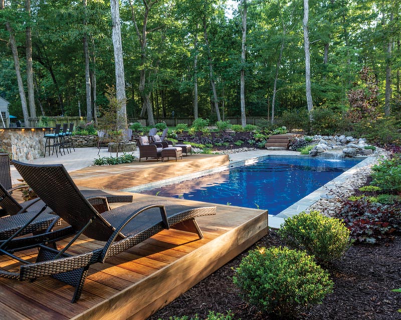 Inground fiberglass swimming pools are a perfect option for your backyard oasis. They work great with salt, require less maintenance and are long lasting. Pools Patios and Spas has partnered with River Pools, the leader in fiberglass in-ground pools. They have perfected an installation system that we follow. Through our partnerships with River Pools, we offer elegant swimming pool designs and aesthetic features that are now as much works of art as the pool.