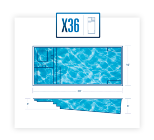 This one checks all the boxes! Rectangular pool design meets integrated spa meets tanning ledge. The X36 has everything you need to relax, unwind, or throw that party that everyone will remember…Did we mention it’s auto-cover ready?